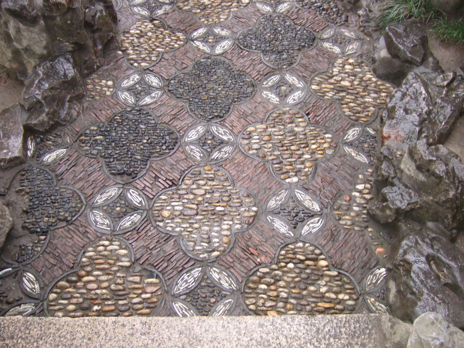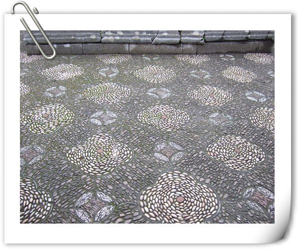 在中國江南,有錢人家庭院的鋪面,常以小石頭排列成「有錢有花」的圖案,也就是以錢幣的圖案,和花朵的圖案交錯排列在一起。而花朵與錢幣之間的距離,恰好是一個步伐的距離,因此,主人與賓客便在錢幣與花朵之間來回踱步,象徵著一個人有財富也有個健康的好身體,也就是能夠同時擁有財富,也懂得花錢,是個吉祥的象徵。附圖是蘇州園林--內庭院的有錢有花的鋪面圖案設計。