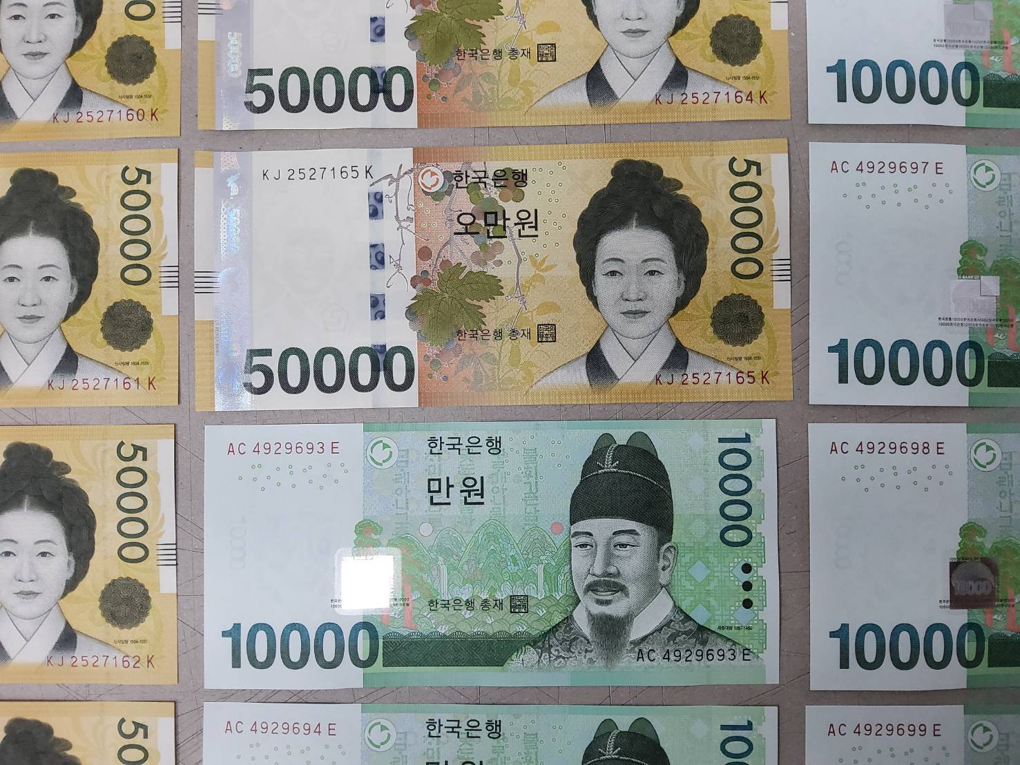小編為了探索韓元的防偽造設計手法, 特別去台灣銀行購買了兩組連續號碼的韓元, 這些韓元新鈔色調柔美, 聞起來的味道很優雅喔. 😊